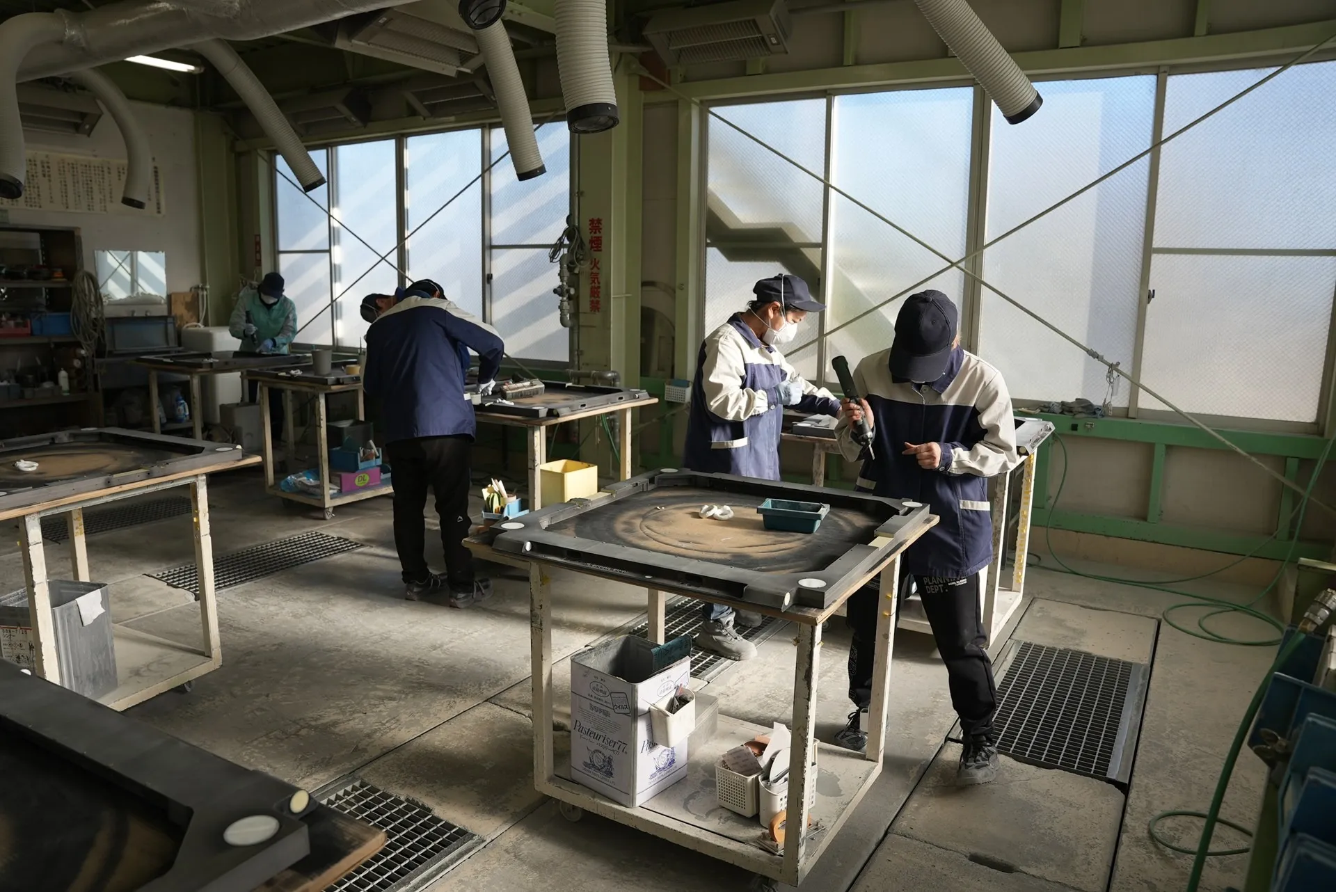 BUSINESS当社は、装置メーカー向けのフレームやパネル類を中心に、金属製品への塗装を行っています。 全長130mのトロリーコンベア式塗装ラインを備え、溶剤焼付塗装および粉体塗装の双方に対応し、量産品…
